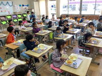 今日から、1年生の給食が始まりました。初日とはいうものの、みんなで協力して上手に配膳をすることができました。