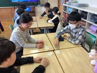 「その数字は、動物の大きさでいうと何?」いうお題に合わせ、「すずめ」「うさぎ」「くま」など、それぞれが想像した動物を出し合い、カードの順番を決めていきます。なかなか思うようにはいかないのですが、うまくいってもいかなくても、回数を重ねていくうちに表情がやわらぎ、グループのコミュニヶーションが深まっていく様子がみられました。
