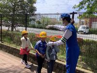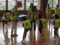 歩行の時に気を付けることについて、ひとつひとつ動作を確認しながら歩く練習をしました。1年生はとてもしっかりしていて、自分の目できちんと安全を確かめている様子が見られました。