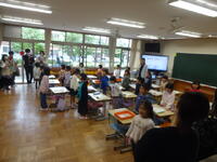 1年生は初めてのオンラインによる集会でしたが、どのクラスでも、みんなしっかりと画面を見て校長先生や生徒指導担当の先生のお話に耳を傾けていました。お話にあったように、生活に気を付けながら良い夏休みを過ごし、元気に学校に戻ってきてほしいです。