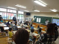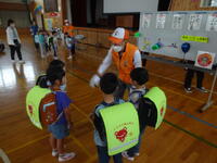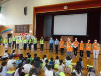 1年生が防犯教室を行いました。三島警察署、防犯協会、市役所地域協働・安全課の方、スクールガードやPTA役員のみなさんなど、多くの方たちが1年生のために集まってくれました。