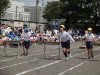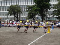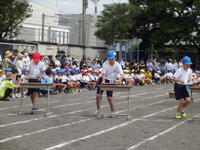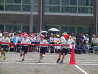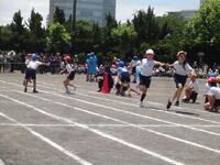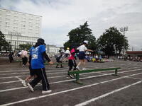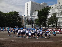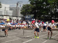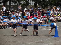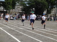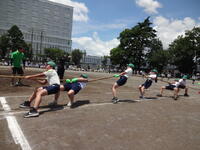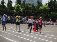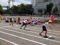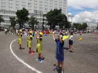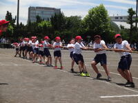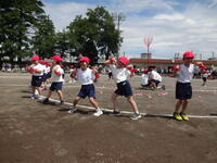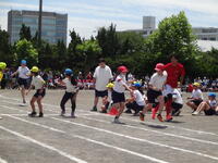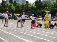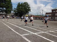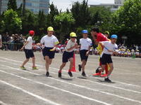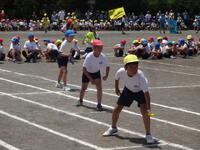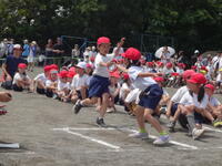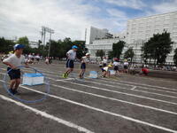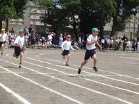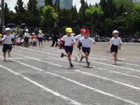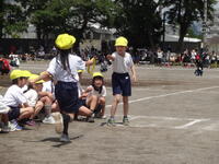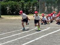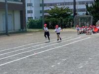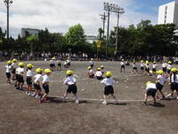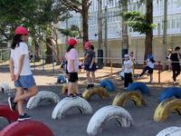 ドッジボール、タイヤ跳び、、ブランコ、鬼ごっこなど、思い思いの遊びを楽しんでいる様子、中には、運動会に向けて、リレーの練習を始めているクラスもありました。子供たちが集まり、運動場はとても活気に満ちていました。