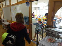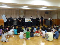 2年生と北幼稚園の皆さん、そして、興味を持って集まってくれた3年生以上の北っ子のために、「ともだちや」を読んでいただきました。のぼりやちょうちんが出てきたり、音楽を流したりと、本の世界に子供たちが入り込みやすいよう工夫してくださっていました。おかげで、みんな楽しい時間を過ごす頃ができました。