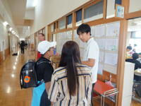 北中学校と合同で引き渡し訓練が行われました。子供たちは教室で、いつお迎えが来るのかとそわそわしながら待っていたので、お迎えに来たおうちの方の姿を見て嬉しそうな笑顔を見せていました。