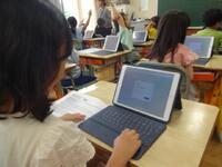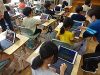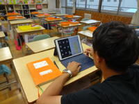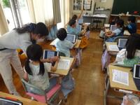 1組は算数、2組は音楽、3組は図工でした。3組の図工ではタブレットを使ってデザインを考える場面がありました。
