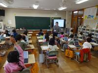 2年生が、ALTのアンディー先生と一緒に、外国語活動(英語)の学習をしていました。