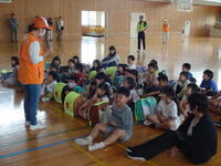 最初に、DVDを見て自分の身を守る方法を勉強しました。その後、実際に大きな声を出したり、走ってかけこみ110番の家に逃げ込んだりする練習をしました。いざというときに、とっさに行動できるようにしっかりと練習することができました。