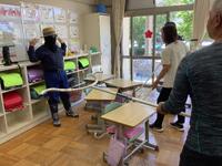 今日、第1月曜日は清掃ボランティアの活動日です。6人のボランティアさんが、トイレや床の清掃を行ってくれました。子供たちも日頃の清掃をがんばっていますが、ボランティアさんにやっていただくと、一段ときれいになります。いつも本当にありがとうございます。