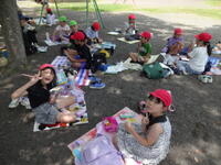 2年生が、昨日に引きつづき、今日も町たんけんに出かけました。今日は、市民体育館から東壱町田のみどり野公園を目指して行きます。暑くなりそうな予報でしたが、みんな元気に出かけていきました。