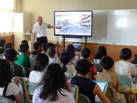好きな食べ物や得意なスポーツなど、地図や絵カード、ジェスチャー使っての自己紹介を通して、みんな楽しい授業に引き込まれていました。