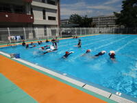 5年生のプール開きです。今日は、気温も水温も高く、水の中はとても気持ちよさそうでした。