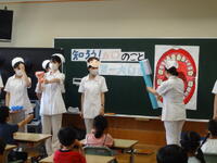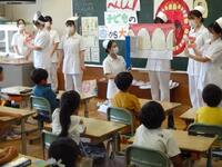 2年生の歯磨き教室が行われました。鈴木学園で歯科衛生士を目指している学生さんたちが今日の先生です。2年生の各教室で白衣を着た学生さんたちが、歯磨きの大切さや歯磨きの仕方を上手に教えてくれました。途中でクイズもあって、子供たちは楽しく勉強することができました。鈴木学園の皆様、本当にありがとうございました。