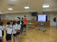 今週は月曜日から気温35度の予想が出ています。各教室は、エアコンと扇風機が大活躍をしています。昼休みも、熱中症指数が「危険」にあるときは、外遊びを中止して、室内で過ごしています。登下校のマスク着用の、熱中症対策を最優先にします。特に下校時は、着用しないことを原則とします。
