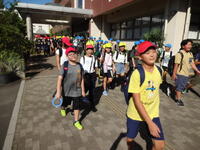 38日間の夏休みが明けて、学校に子供たちの元気な声と笑顔が戻ってきました。初日からあいにくの雨でしたが、子供たちは元気に登校してきました。