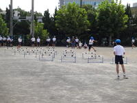 6年生が、運動場で「ハードル走」を行っていました。昨日までの涼しさから一変、今日は気温も上がってかなり暑くなっていましたが、しっかりと水分補給しながら元気に走っていました。