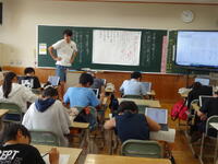 5年2組で研究授業を行い、先生たちが授業参観しました。