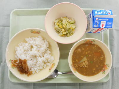 麦入りごはん 牛乳 チキンカレー 福神漬 フレンチサラダ