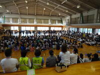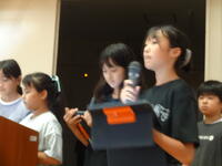 4年生からは合唱を、5,6年生からはダンスのプレゼントがありました。4,5,6年生は練習の成果を発揮してすばらしいパフォーマンスをお目にかけられたと思います。最後に、全校で校歌を歌って会は終了しました。サポーターさんたちからは、感動したとお褒めの言葉もいただきました。