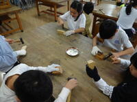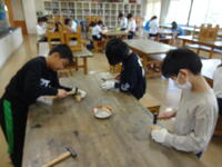 3年生が図工室でくぎ打ちをしていました。用意された木材にくぎをどんどん打ちこんでいきます。リズムよくたくさん打ち込んでいるので、その「トントン」という音が1階の職員室まで響いてきました。打ち込まれたくぎがどのように見えてくるか楽しみですね。