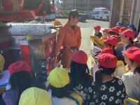 消防車を間近で見ながら、消防士さんに消防車の種類や機能をたくさん教えていただきました。