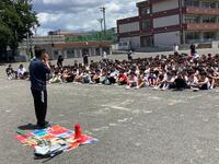 三島市の福祉応援大使として活躍している「めんぼーくん」が、なかよし学級1年生のために読み聞かせに来てくれました。めんぼーくんとの楽しい時間に、子供たちの笑顔があふれていました。