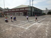 今日は運動場と体育館でそれぞれ、ソフトボール投げ、50m走、反復横跳び、上体起こし、立ち幅跳びを計測しました。友達の良い記録に手をたたいて褒め合う姿が見られました。