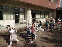 1年生が図工の時間に、新聞紙を使っておばけや魔女など、思い思いに変身しました。魔女のほうきや帽子、剣、弓矢などの小道具まで作り込んで変身を楽しんでいました。20分休みには、変身した姿で運動場を歩きました。北小学校に可愛らしいパレードの列ができました。