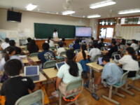 今日は、加須屋真先生を講師にお招きし、上岩崎公園や学校に戻ってきてから昆虫についてたくさんのお話をしていただきました。その後、教室で観察したことをワークシートにまとめました。虫かごの中の昆虫を嬉しそうに眺めている姿が印象的でした。