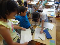 今日は、加須屋真先生を講師にお招きし、上岩崎公園や学校に戻ってきてから昆虫についてたくさんのお話をしていただきました。その後、教室で観察したことをワークシートにまとめました。虫かごの中の昆虫を嬉しそうに眺めている姿が印象的でした。
