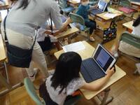 1組は算数、2組は音楽、3組は図工でした。3組の図工ではタブレットを使ってデザインを考える場面がありました。