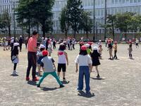 ドッジボール、タイヤ跳び、、ブランコ、鬼ごっこなど、思い思いの遊びを楽しんでいる様子、中には、運動会に向けて、リレーの練習を始めているクラスもありました。子供たちが集まり、運動場はとても活気に満ちていました。