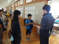 北中学校と合同で引き渡し訓練が行われました。子供たちは教室で、いつお迎えが来るのかとそわそわしながら待っていたので、お迎えに来たおうちの方の姿を見て嬉しそうな笑顔を見せていました。
