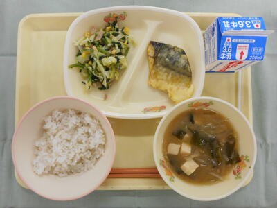 麦入りごはん 牛乳 さばのカレーチーズ焼き ほうれん草のソテー みそ汁