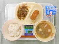 今日の給食 投稿日時 : 2023/01/24 管理者 **献立**麦入りごはん牛乳みしまコロッケきんぴらごぼうつみれ汁のりふりかけ ★主な食材の産地★だいこん・・・三島市葉ねぎ・・・三島市にんじん・・・三島市鶏肉・・・静岡県豆腐・・・静岡県 今週は「給食記念週間」です。今日は「みしまコロッケ給食」として、三島甘藷(かんしょ)を使ったコロッケが登場します。