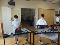 5年生が音楽の時間に、「カイト」の合奏練習をしていました。鉄琴や木琴を使い、各自が自分の楽器のパート練習をしていました。楽譜は紙でなく、タブレットを活用していました。合奏が完成したら、ぜひ聞かせてください。