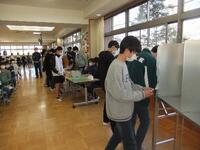 1月17日(火)、6年生が「デザート選挙」の出前授業を行いました。この授業は、三島市選挙管理委員会のご協力を得て、実現しました。子どもたちが選挙を体験し、18歳になったときに投票に行くようになることを目的に実施しました。給食に出すデザート「チョコプリン」「チョコクレープ」「ガトーショコラ」「いちごクレープ」の中から、立ち会い演説を行い、本当の選挙と同じ記載台、投票箱を使い、模擬体験しました。授業にご協力いただいた皆様、ありがとうございました。