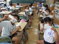 5年生は家庭科で、裁縫を行っています。玉どめ玉むすび、波ぬいを練習布で学習しました。今回は、フエルトを使って、小物入れを作っています。ポケットティッシュカバーや、カード入れ、ゲームのカセット入れを作っていました。