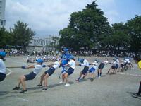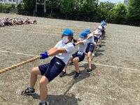 運動会5年生は、個人走「ワンダフルだいすキッズ 100mダッシュ!」と、団体競技「パワフルだいすキッズ タグ&ダッシュ!」を行いました。100m走は、5年生の力強い走りが見られました。「タグ&ダッシュ!」は、綱引きを変則ルールで対戦しました。どのクラスも、今日に向けて、がんばって練習していました。