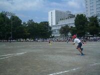 新体力テストの種目に、「ボール投げ」があります。先週、ボール投げのためのラインを書きました。今週は暑い中の体育の授業ですが、子供たちは自分の記録が1メートルでも伸ばそうと、がんばっています。