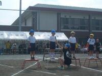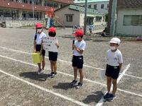 運動会1年生は、個人走「まっすぐ ダッシュ! 40m走」と、団体競技「かごめがけて ぽーん」を行いました。小学校に入学して初めての運動会、たくさんの人が見ている中で、元気にがんばりました。玉入れの前のダンスが、とてもかわいかったです。閉会式まで、しっかり応援もできました。