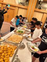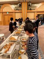 2日目の朝を迎えました。どの部屋も時間通りにしっかりと起床できたようです。荷物の整頓をして部屋ごとに朝食会場にやってきました。今日も一日元気に過ごすために、朝からしっかりと食べたいと思います。