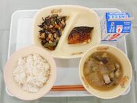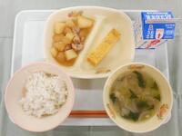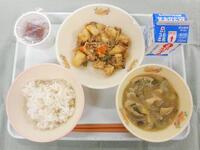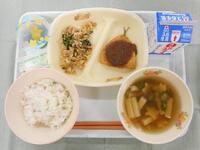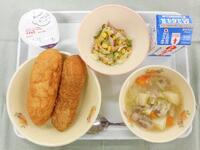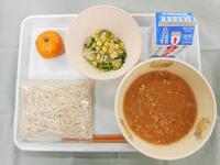 今日の給食は「七夕献立」です。七夕汁には、星の形をしたかまぼことオクラ、短冊の形に切った豆腐、天の川に見立てた糸かまぼこが入っています。