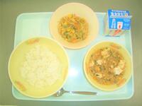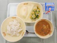 三島市や静岡県でとれた食材をたくさん使用した献立です。鶏肉と里芋の揚げ煮は、三島市でとれた里芋を使用しています。味わって食べましょう。