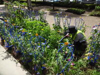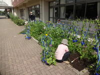 朝から日差しが照りつけ、大変暑くなっている中、花壇ボランティアさんが花壇整備をしてくださいました。1年生教室前の花壇がすっきりきれいになりました。いつもありがとうございます。