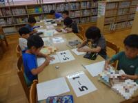 2年生が図書室で授業をしていました。国語の学習で「お気に入りの本」を紹介する学習です。実際に本を手に取りながら、題名や著者、どんなお話か、すきなところなどをワークシートにまとめているところでした。
