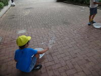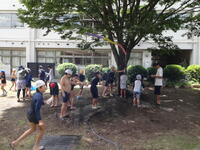 なかよしのみなさんが、中庭で水遊びを行いました。お手製のシャワーで水を浴びたり、水鉄砲で水をかけ合ったりと楽しく遊ぶことができました。