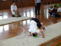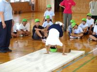 今まで体育の授業で練習してきた技を披露する発表会を行いました。5,6年生が技を見せた後、見学していた低学年の子供たちは「かっこよかった」「うまかった」と素直に感想を口にしていました。