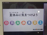 校長先生からは、「夏休みを楽しく過ごすための『あいうえお』」のお話があり、生活指導の先生からは「日月火水木金土」に合わせて生活で気を付けてほしいことなどのお話がありました。最後に、7月で退職される源先生からお別れのご挨拶がありました。教室ではみんな真剣にお話を聞けていて素晴らしかったです。
