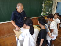 4年生の書写の時間です。「麦」を書くために、筆の運び方をしっかり確認しました。練習用紙で練習した後、半紙に書きます。今日は初めて書いたので、文字の大きさを意識して1枚だけ書き上げました。お手本を見ながら、大きく書くことができていました。