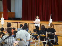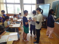 自己紹介のあと、一緒に音楽の授業で学びました。歌を歌ったりトライアングルを響かせたり、仲良く学習することができました。お別れするときは、「また来てね」と手を振って見送っていました。短い時間でしたが、しっかりお友達になれたようです。
